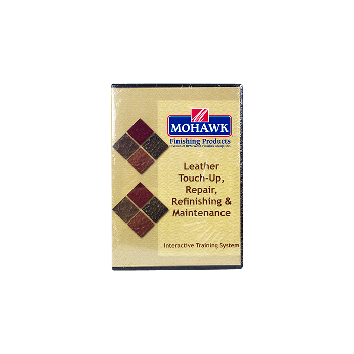 The Mohawk Leather Touch-Up, Repair, Refinishing & Maintenance Interactive Training System is designed to show you step by step procedures and techniques for repairing many types of damage and restoring furniture to good as new condition. This interactive DVD will provide you with instructions on: filling damage, producing duplicate grain patterns, color matching and application, upholstery repair, spot cleaning and much more. 90 min