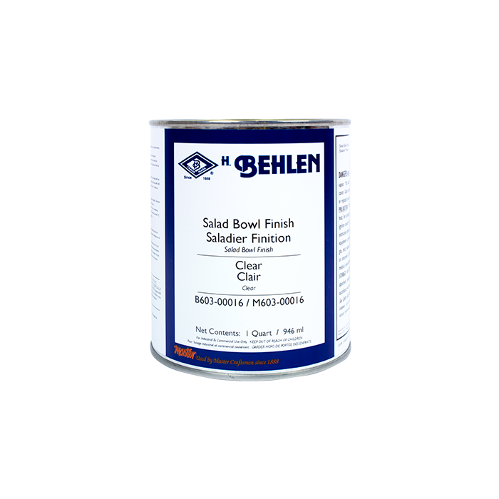 Salad Bowl Finish has the application ease of an oil finish and the film building and sheen producing qualities of a varnish. Wooden bowls, wooden utensils, butcher blocks and recreational related objects like games, puzzles and pull toys when finished with Salad Bowl Finish may be used in contact with food.