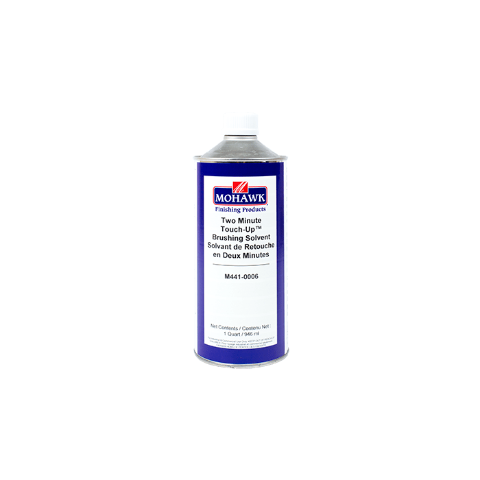 A brushing type clear liquid used with Blendal Powder Stains for spot brush touch-up and coloring edges. Stays wet on the brush, dries in minutes on the repaired surface. A must in every finisher's kit for use in areas where the "padding" method is not practical. To lay the color flat without build up use Two Minute Touch-up Solvent