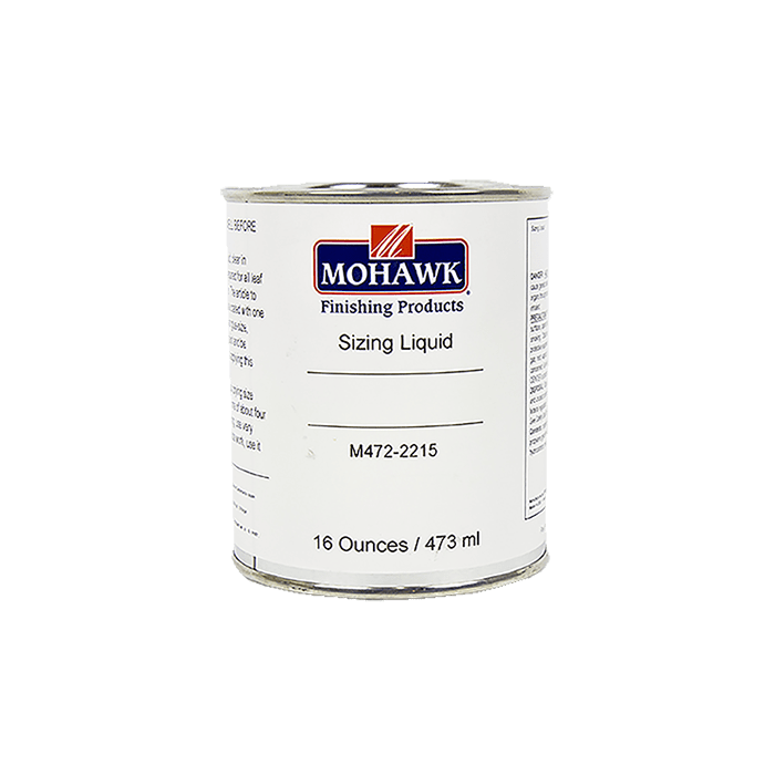 Sizing Liquid, clear in color, is specially prepared for all leaf requiring a quick size. Sizing Liquid is a quick drying size with a workable tack time of about four hours. Dry time can be made slower by adding a small amount of Boiled Linseed Oil.