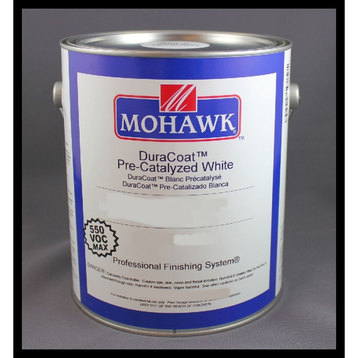 DuraCoat Pre-Catalyzed White topcoats provide a premium quality finish that offers high moisture resistance, good flexiblility, mar resistance and excellent durability. It is an outstanding finish for furniture, kitchen or bath cabinets. When used over the Mohawk E-Z Vinyl Sealer and White Primer the system passes KCMA tests.
