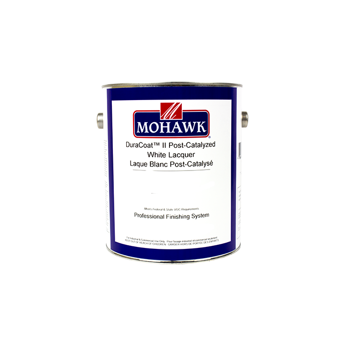 DuraCoat II Post-Catalyzed White Lacquer is perfect for kitchen and bathroom cabinetry. It is a maximum 275 VOC lacquer, easy to use, high performance topcoat that is specifically formulated for high moisture and contact areas without losing control of your shelf and pot life. DuraCoat II is a state of the art post-catalyzed lacquer topcoat. DuraCoat II is also easy to mix. One bottle of the appropriate, pre-measured DuraCoat II Catalyst (M612-301) is added to a single gallon or a 5 gallon pail. DuraCoat II has a 6 month shelf life after the catalyst is added which is superior to the normal post-catalyzed products. DuraCoat II produces a higher level of durability and near conversion varnish performance with all the benefits of a pre-catalyzed finish system. Use with the E-Z Vinyl White Sealer (M612-106). DuraCoat II is the perfect choice when you need conversion varnish durability without the concerns of short pot life or wasted material. DuraCoat II topcoats are supplied at a ready to spray viscosity.