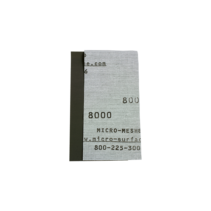 Micro-Mesh very fine grade abrasive pads in 7 grades used for fine scratch removal. Finest grit-12,000. Capable of polishing a finished surface to a semi gloss and even a high gloss surface. Commonly used on polyester or acrylic surfaces to achieve super-high gloss. 4 per package, 3" x 6".