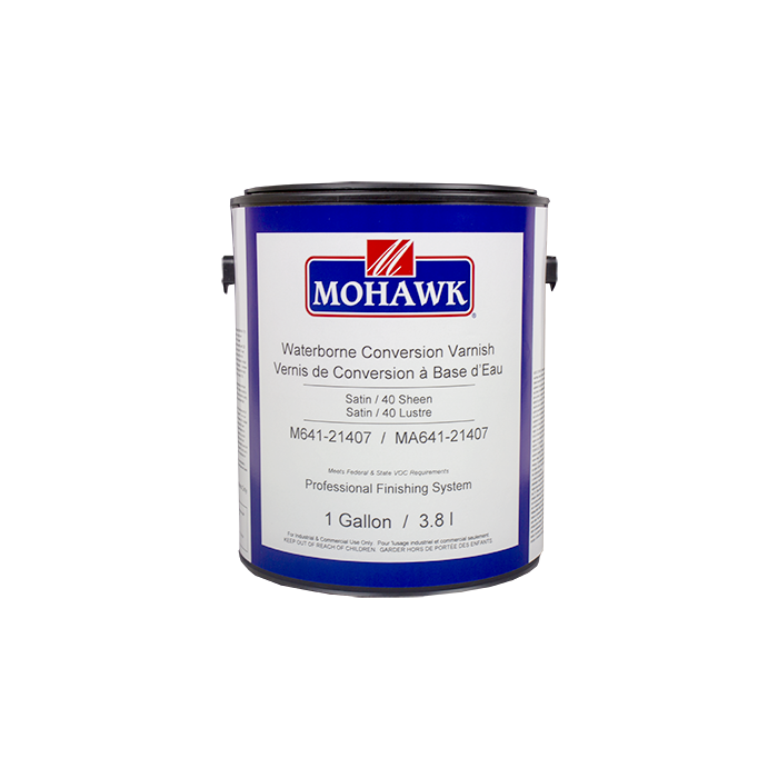 Waterborne Conversion Varnish is formulated to meet production shop needs and is an excellent environmentally friendly alternative to comparable solvent base post catalyzed products. Waterborne Conversion Varnish may be applied over any Mohawk stain or opaque colors. Allow oil type stains to dry a minimum of 1 hour for improved adhesion.